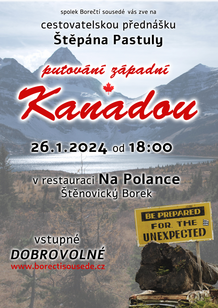 Spolek Borečtí sousedé vás zve na cestovatelskou přednášku Štěpána Pastuly. 26.1.2024 od 18:00 v restauraci Na Polance
