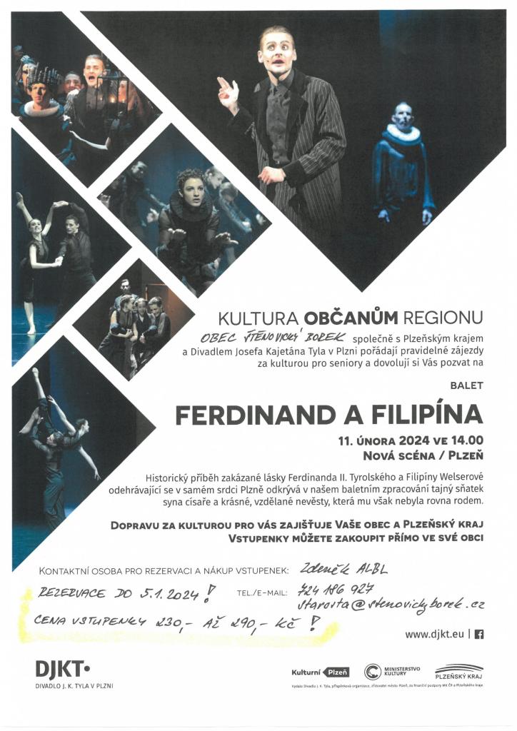 Obec Štěnovický Borek společně s Plzeňským krajem a Divadlem Josefa Kajetána Tyla v Plzni Vás zvou na balet Ferdinand a Filipína.